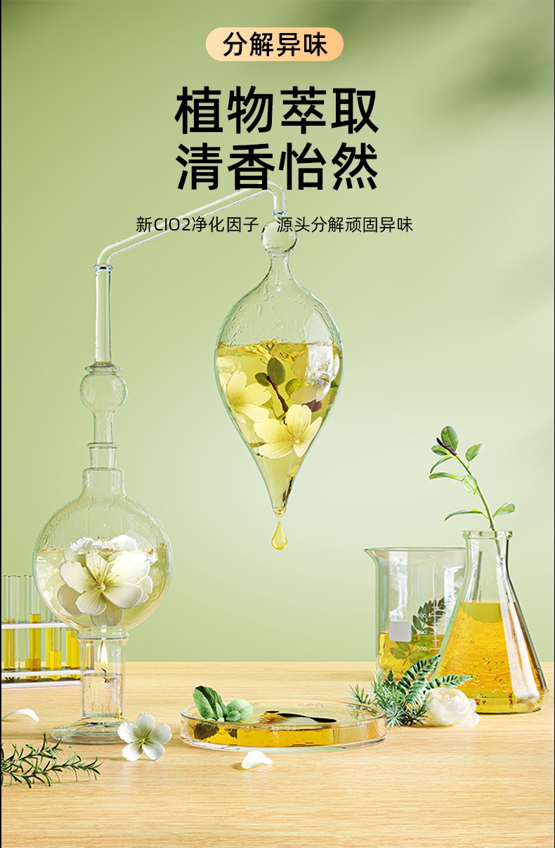 2. Разлагает запахи, извлекает из растений ароматный и приятный новый фактор очистки CI02 и разлагает стойкие запахи у источника.