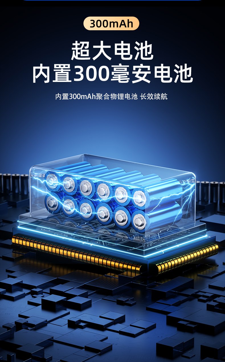 Большая батарея емкостью 9,300 мАч со встроенной батареей емкостью 300 мАч и полимерной литиевой батареей емкостью 500 мАч для длительного срока службы.